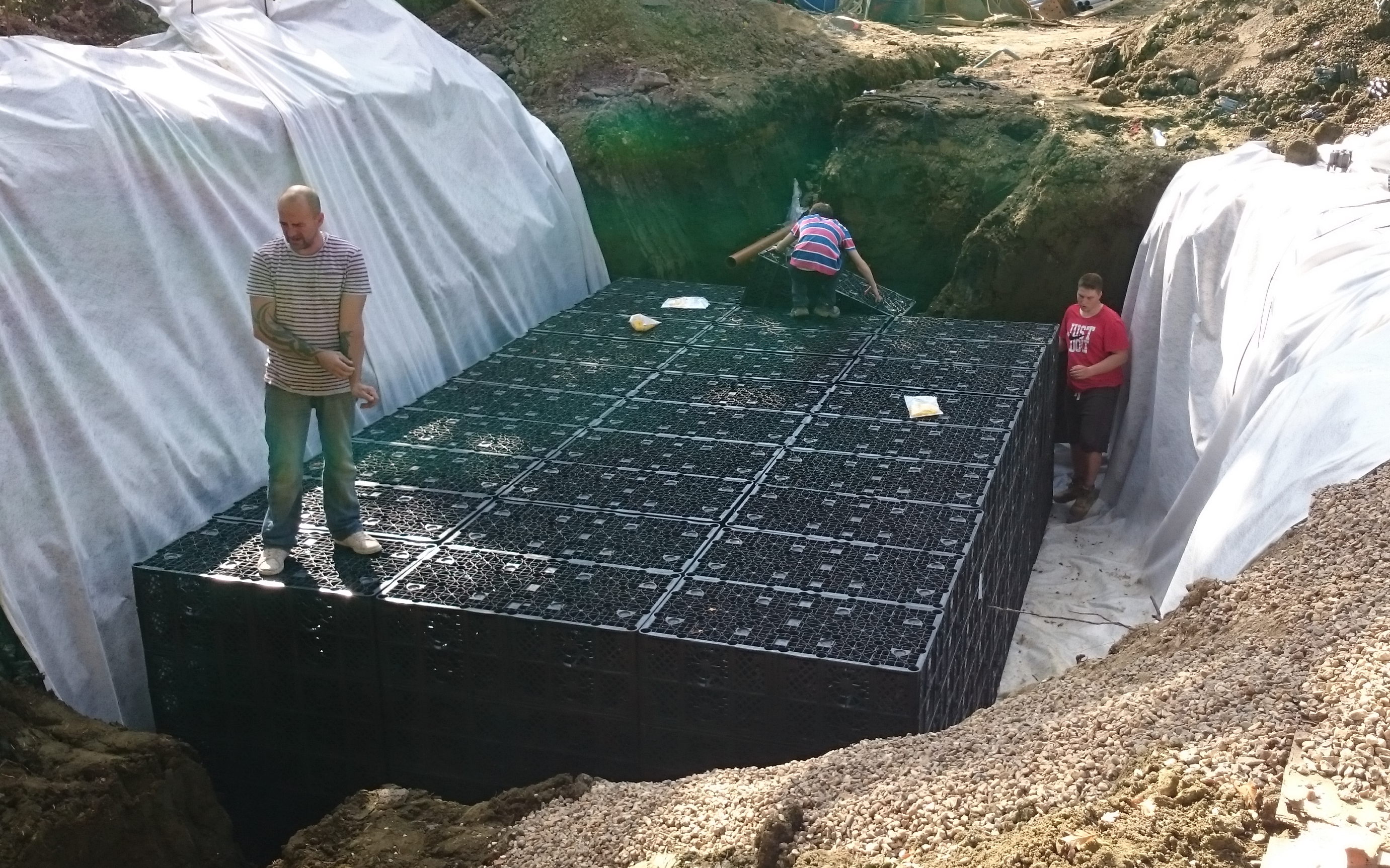 Gunns Contractors can install all types of drainage from foul runs to septic tanks, storm and land drains to rainwater harvesting and soakaways. We are used to working to building control standards and have installed a variety of systems to suit any application.