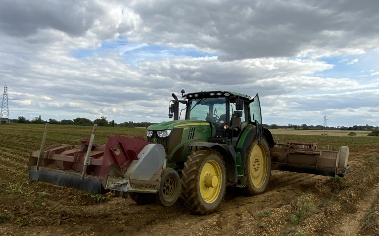 We have a triple bed flail and ridge press that is able to cover some serious ground in a single day and can travel to places far away easily. Run on both front and rear PTO, our triple bed flail covers three potato beds at a time. We can adjust the wheels and widths of the machine to suit your potato set-up dimenstions.