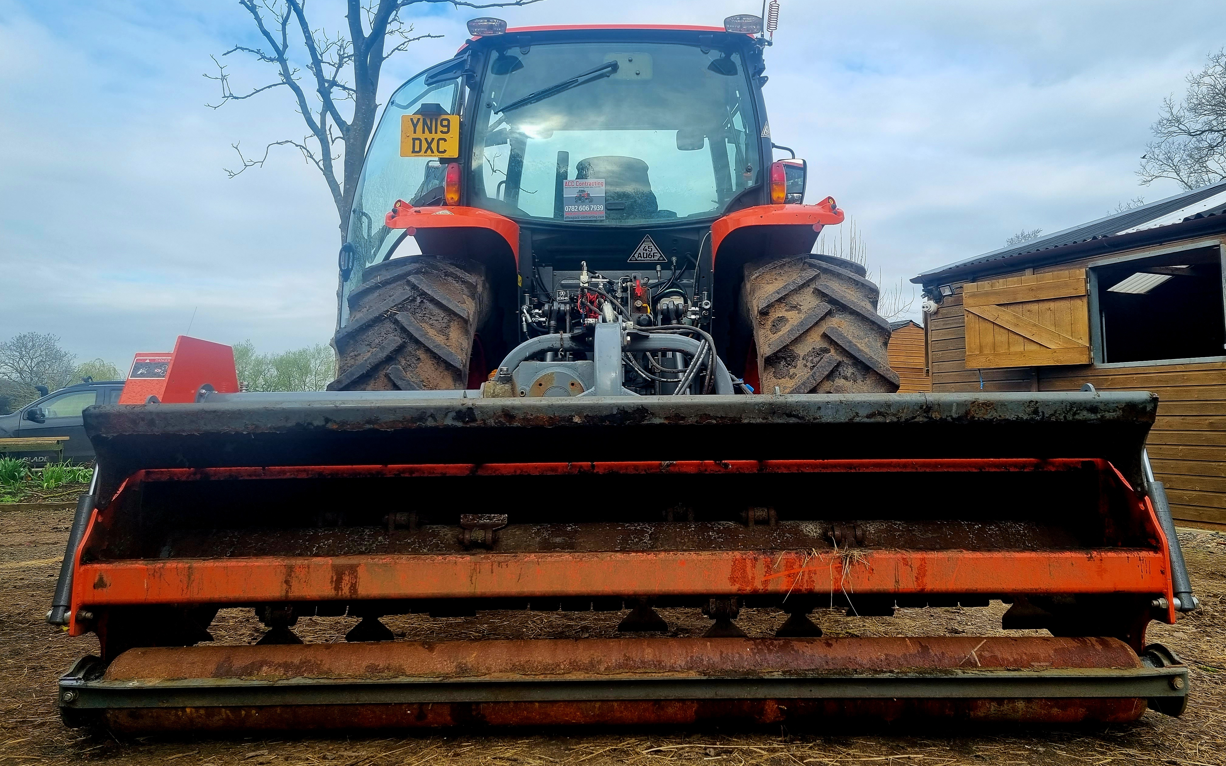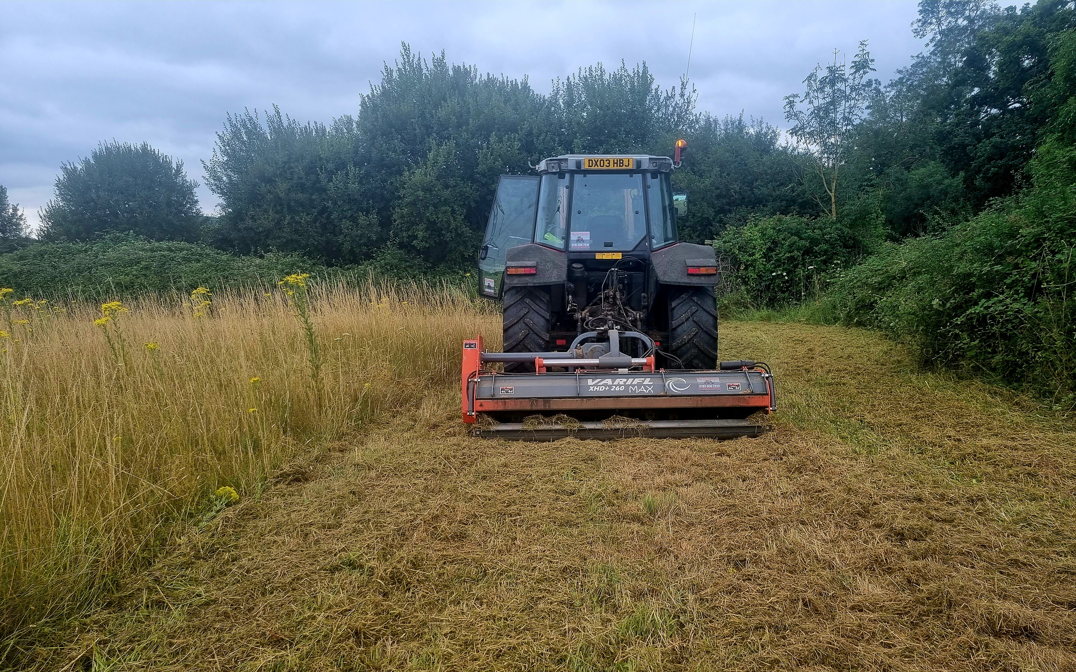 120hp Tractor and 2.6m flail mower with hammer flails, hydraulic rear gate and hydraulic sideshift. Ideal for pasture topping, site clearance, paddock topping, scrub, gorse, bracken and bramble clearance. Also 2.8m width available. 1.5m and 2.0m widths on smaller tractor also available and can be transported on our beavertail HGV.