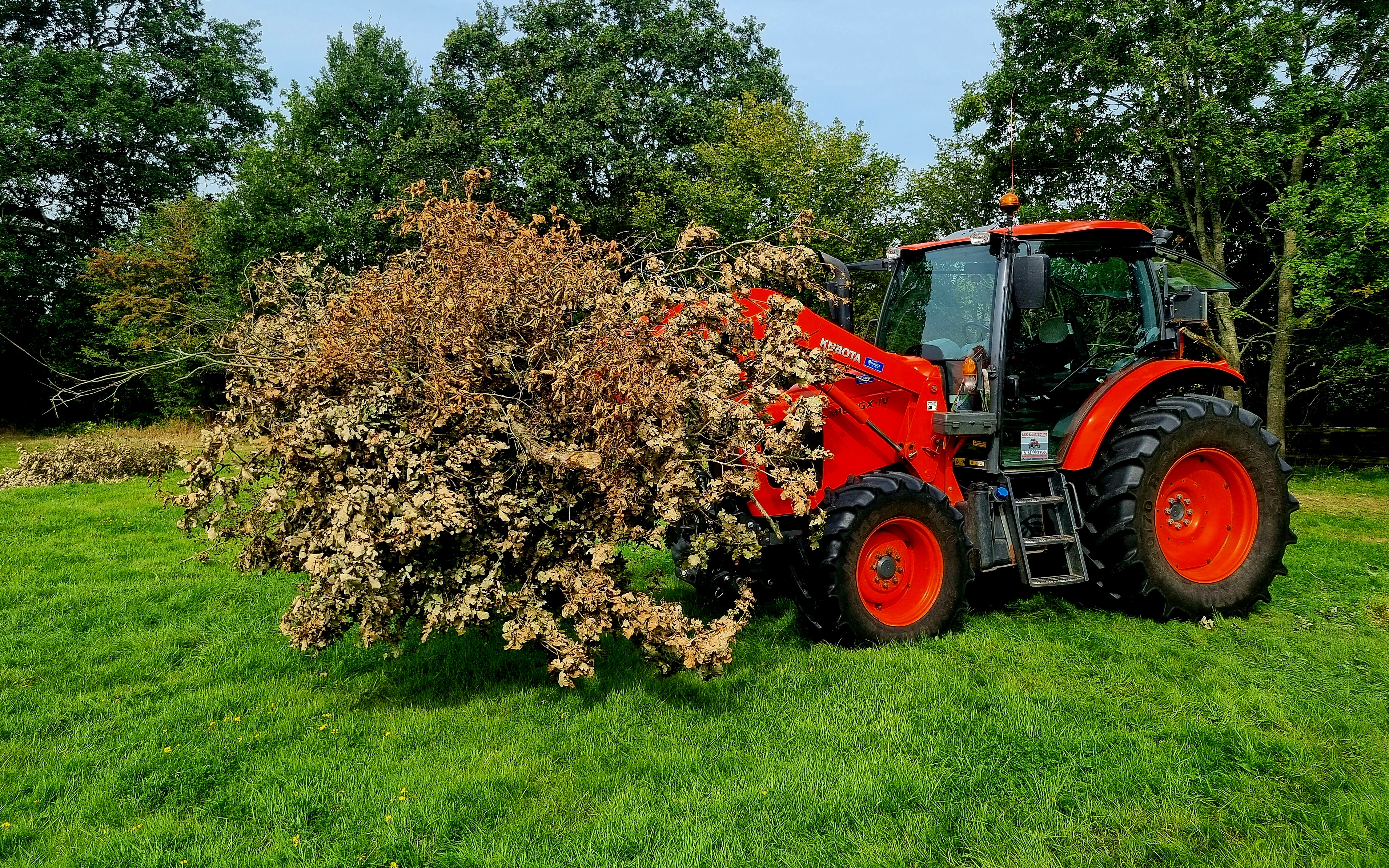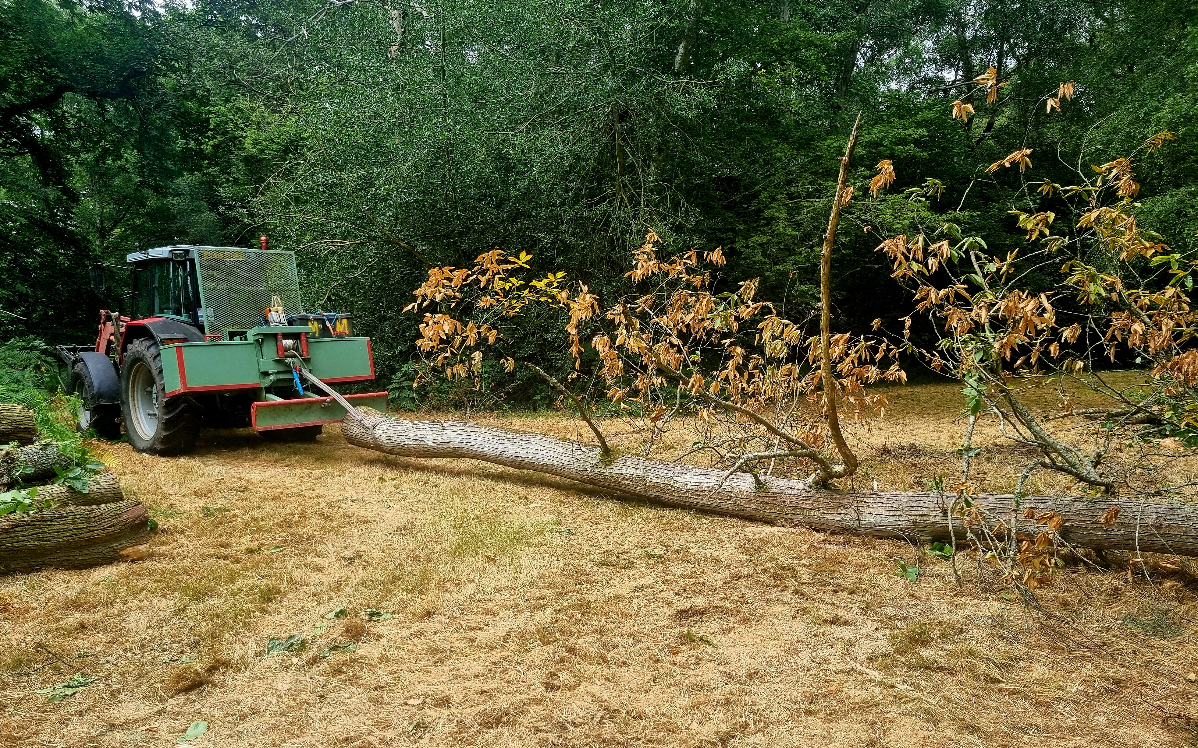 100hp tractor fitted with timber / brash grab on loader, rear mounted hydraulic winch / PTO chipper / woodchip bulk trailer / timber trailer / ect.