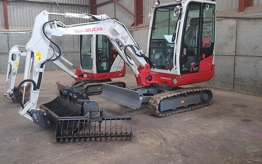1.8ton mini digger hire 3 ton digger hire Land rake Hydraulic breakers Post hole borer Ripper tooth