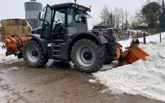 3 way snow plough with rubber/harnox blades. self loading 3 point linkage gritter box with variable spread.