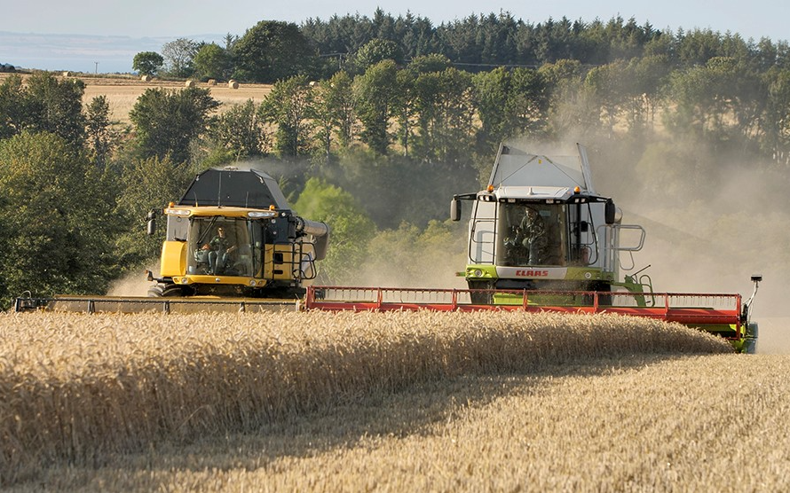 Combine harvesters with yield mapping, rtk guidance, chaser bin and lorries.