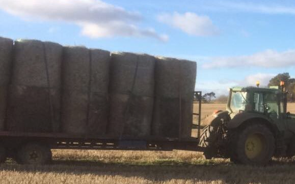 Our 27ft flat bale trailer comes with bale gates front and back super single tyres and a tractor with lgp tyres