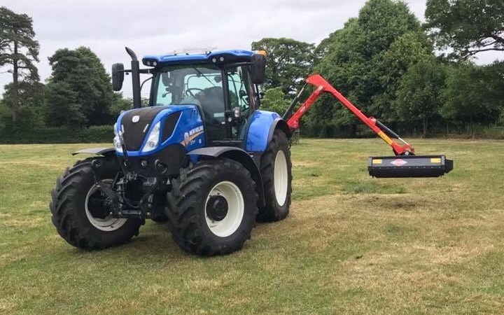Experienced hedge cutting a Kuhn Agri longer with a 5meter cutting hight flotation header for cutting verges fitted with hammer flails.