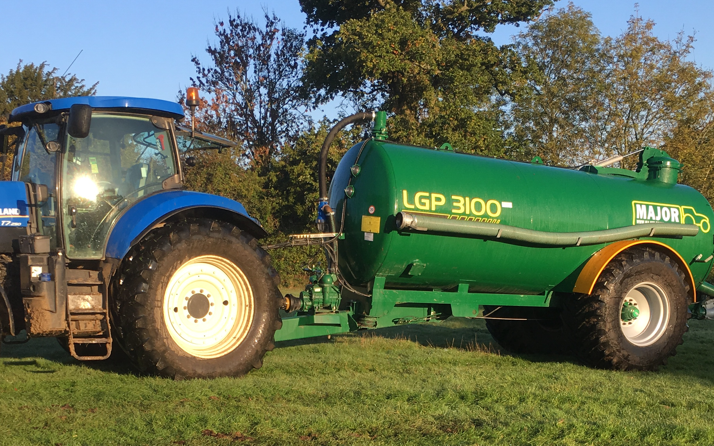 Slurry spreading service with major 3100 gallon tanker on low ground pressure tyres. Top fill hatch if required