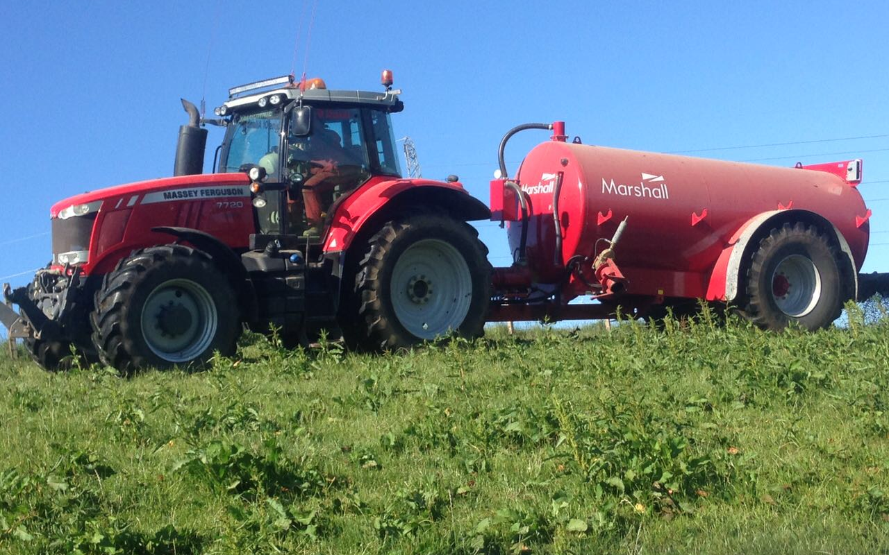 Slurry spreading with two Marshall 2550 tankers on 800 tyres