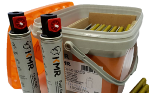 KMR fencing staples 33mm 33mm length, 3.3mm x 2.75mm wire, 12.9mm width Box 2,520 staples including 2 x 40g/80ml fuel cells Bezinal coated - lasts 3 times longer Divergent point / ribbed for superior hold Supplied in a weather proof tub