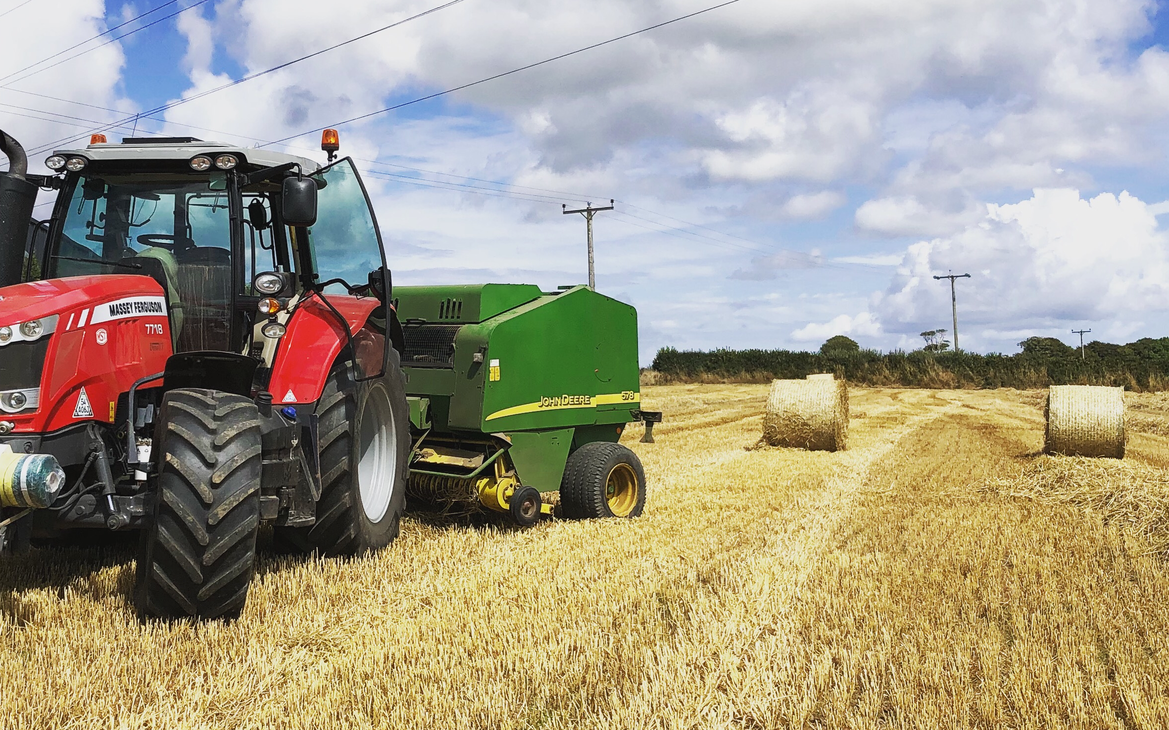 JD round bailer, has knifes if necessary.