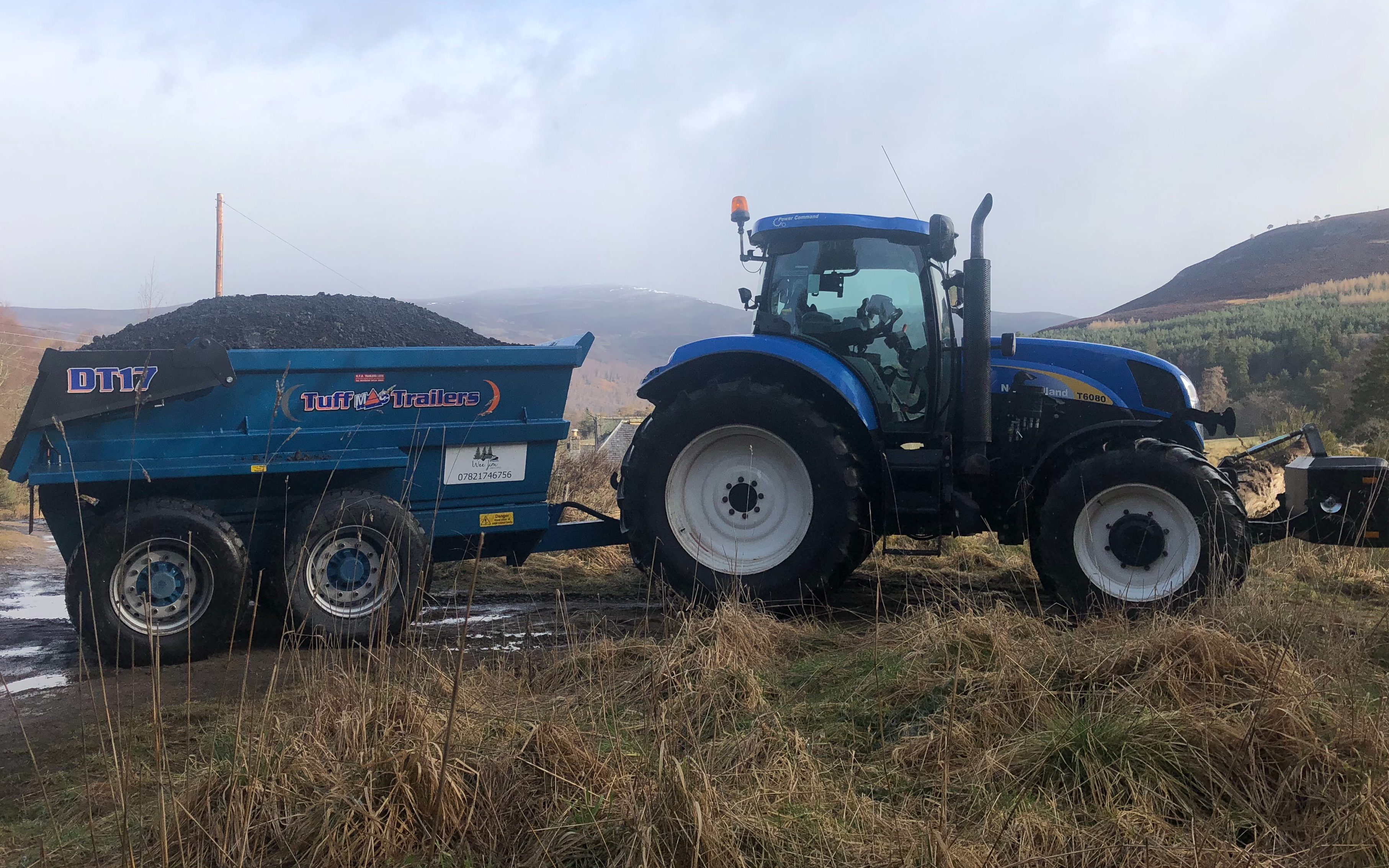 New Holland T6080 and 17 Ton Dumper available. Tractor can travel at 50kph.