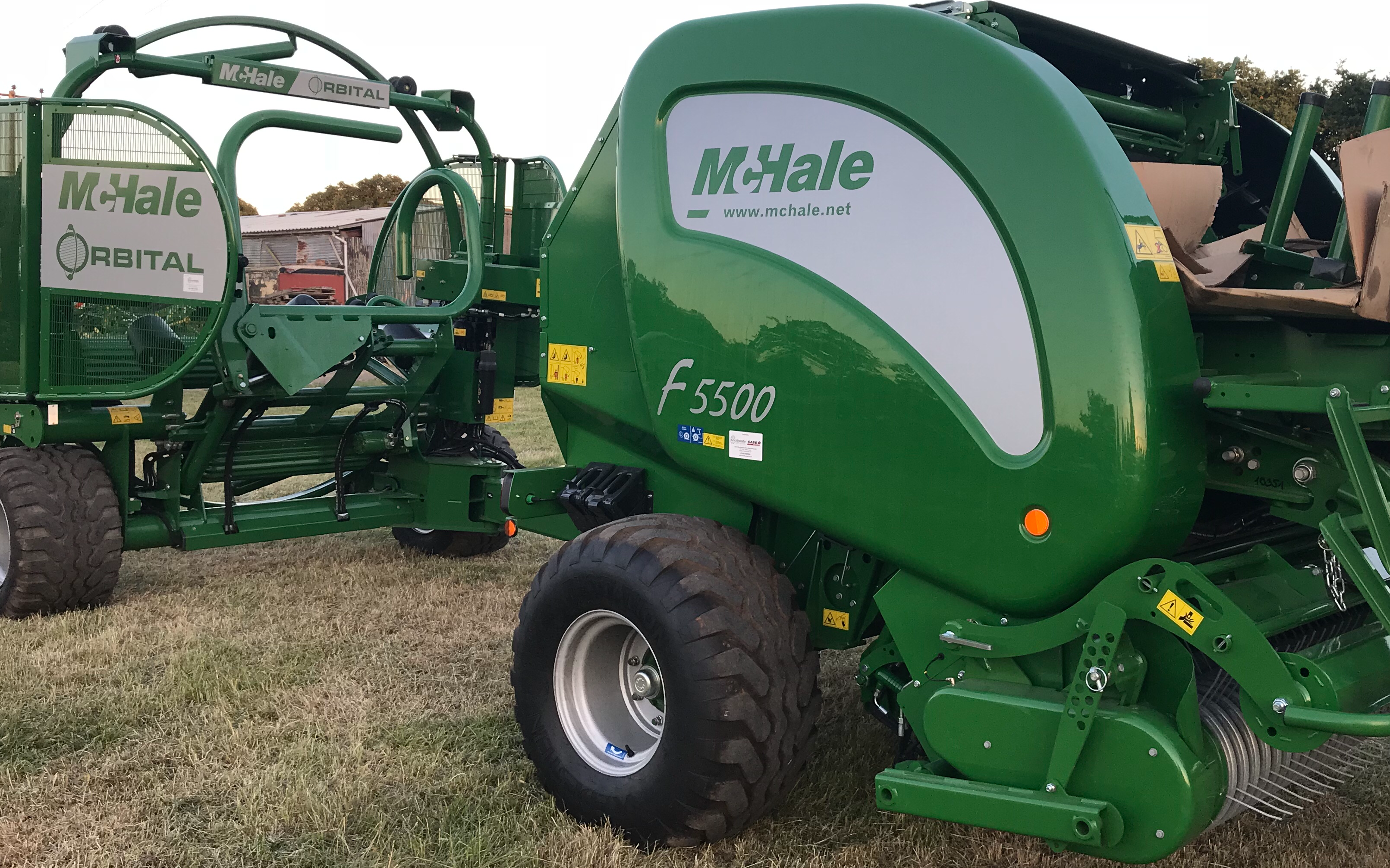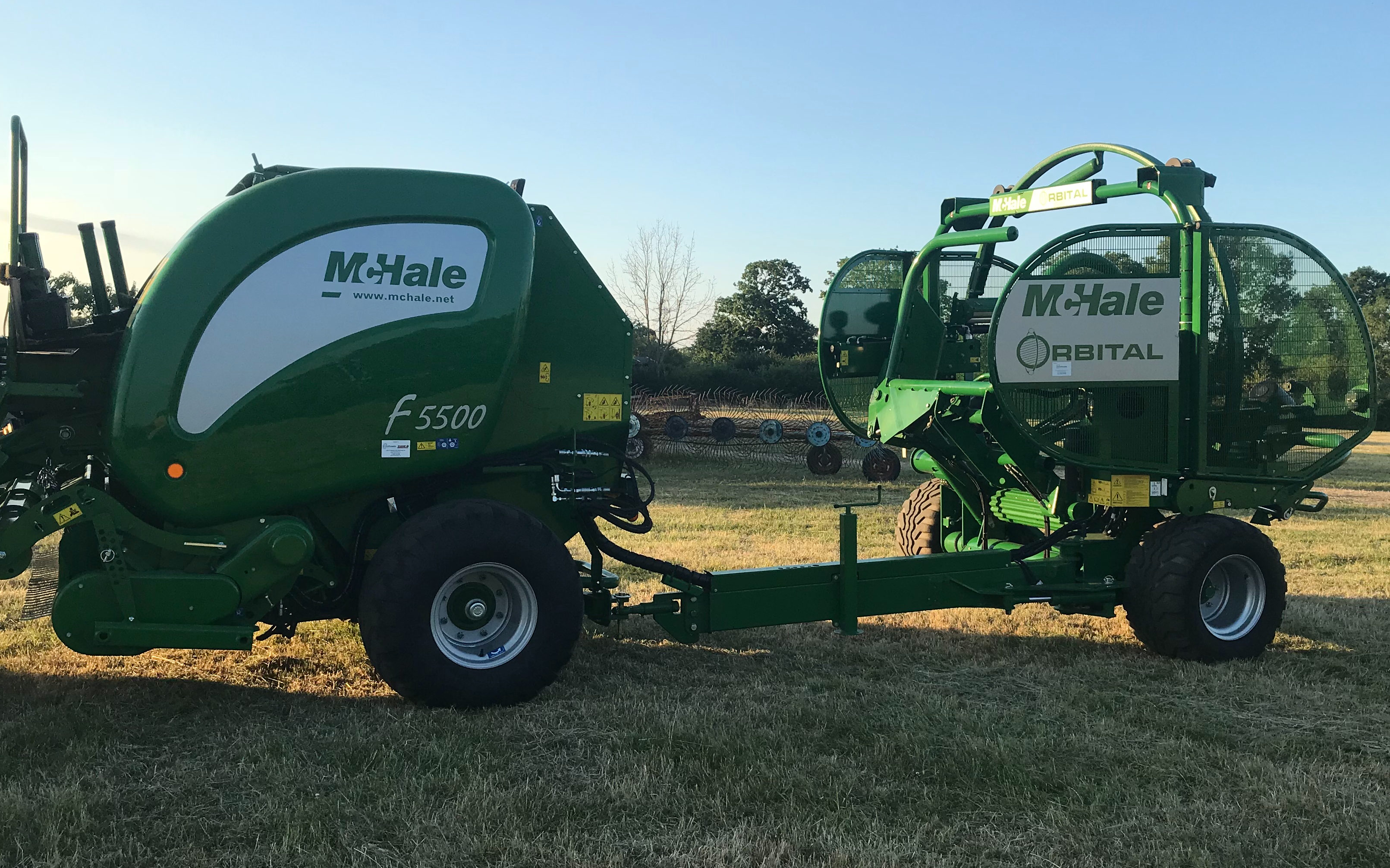 Inline combination round baling and wrappingMchale F5500/And orbital wrapper